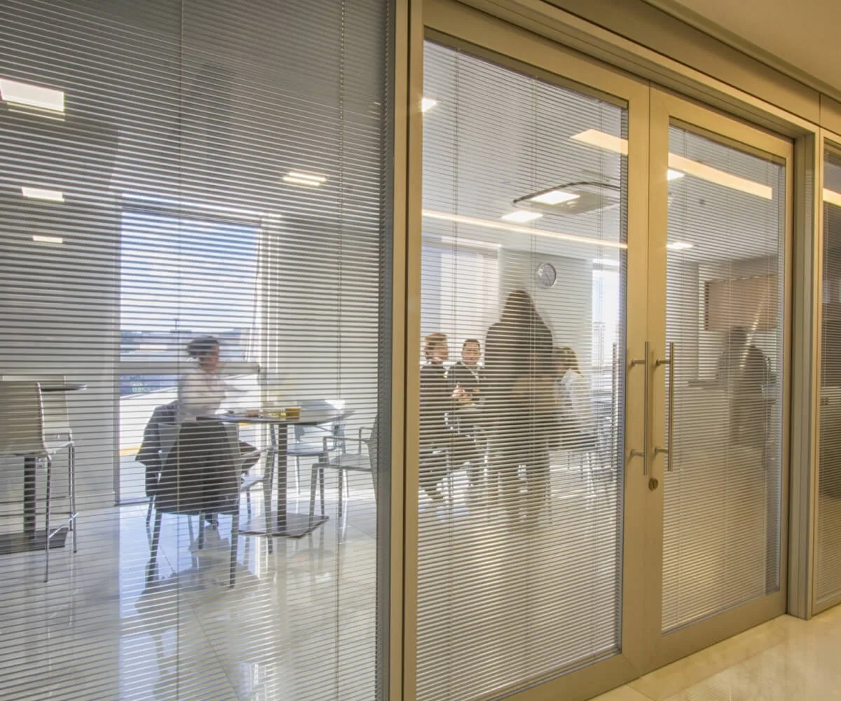 Utilizado em divisórias, proporciona maior privacidade nos espaços corporativos.