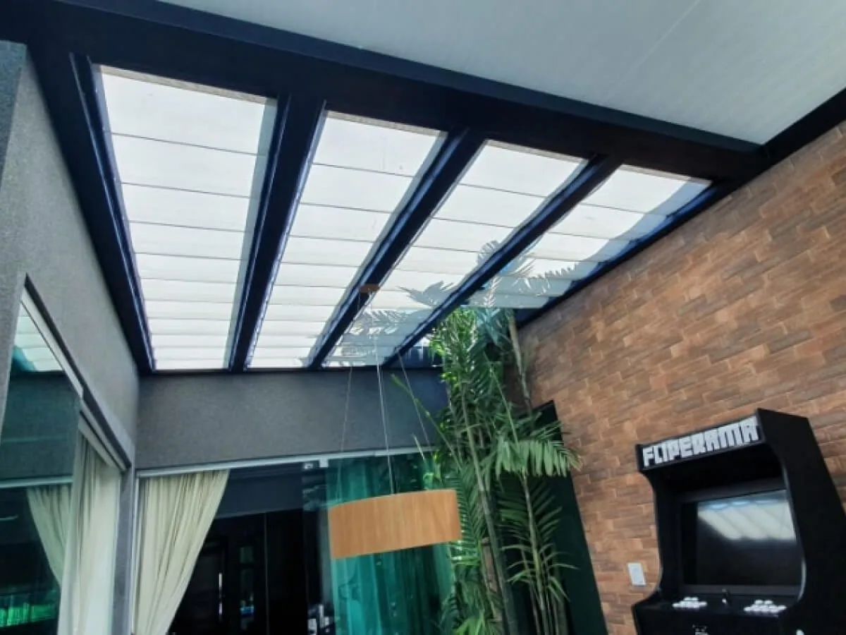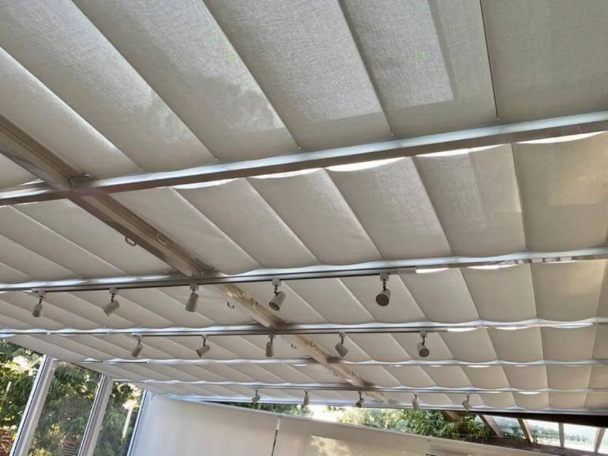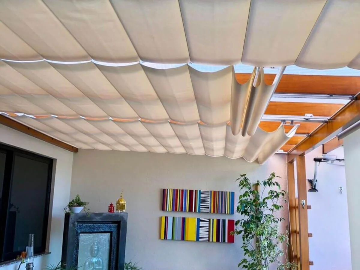 A Cortina Romana de Teto proporciona funcionalidade e beleza ao ambiente, seus gomos ficam esticados quando fechados e o volume gerado no recolhimento da um charme e elegância, proporcionando a sensação de aconchego.