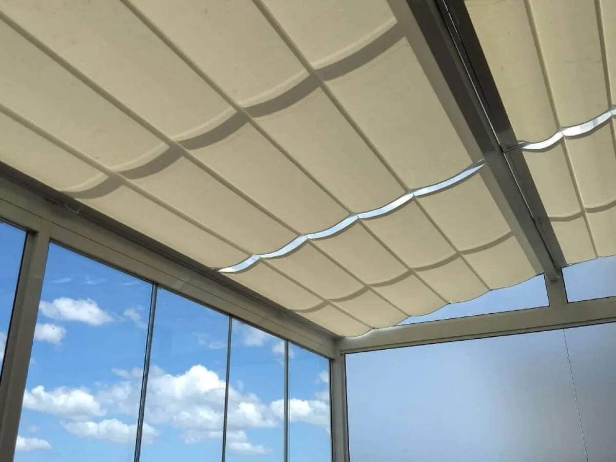 Tecidos como as telas solares reduzem drasticamente o calor e o efeito estufa, sendo perfeitos para este tipo de solução, porém também existe a possibilidade de diversas formatos e cores, dos decorados aos blackouts.