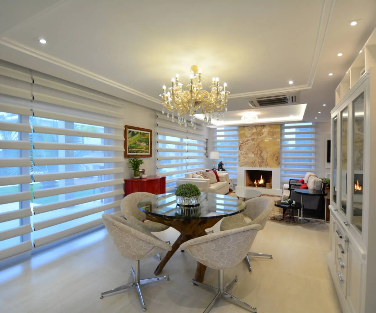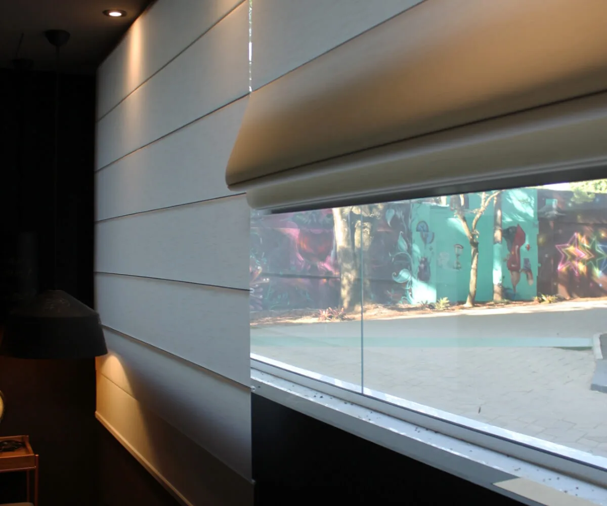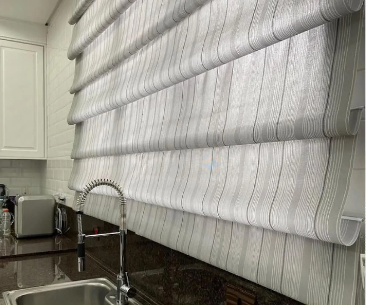 A Persiana Romana representa a expressão do movimento: leveza, sincronia, balanço e fluidez. Seu diferencial é o tecido especial que proporciona uma abertura intermediária e a visibilidade por meio da tela transparente. O charme, delicadeza e toque romântico fica por conta dos pequenos gomos do tecido que lembram a Romana Cascade.